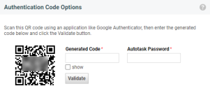 NOTE The One Time Password is valid for 30 seconds! IF you fail to enter the generated code and your Autotask password and click Validate within 30 seconds, repeat with a newly generated code.