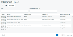 Attachments are accessed from and managed on the entity they are attached to. They can be located in an Attachments section, or on an Attachments or Activity accessory tab. Except on the Activity tab, all attachments to an item will be listed in a table. Context menu options will depend on the type of attachments.