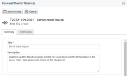 IMPORTANT  When you use Forward/Modify, you edit the ticket and all workflow rules that contain the Ticket Edited event will fire. When you use Forward/Modify for bulk operations like reassigning ticket to a new ticket category, be aware that this might send a large number of notifications to your customers.