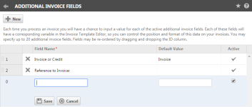 NOTE   You cannot delete a field if there is any data associated with it on any invoices that have been processed. Alternately, you can inactivate it.