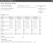 • You can configure custom hours for the SLA on the SLA Hours tab. The Hours tab allows you to specify business hours, extended business hours, holiday handling, and a time zone for the SLA.