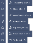 The Quick Add bar allows you to add new accessory items to the entity with a click or a keyboard shortcut. It remains in the same position when you scroll the page. Hover over an icon to display the name of the entity and the keyboard shortcut. Here, the Quick Add bar is shown in collapsed and expanded mode: