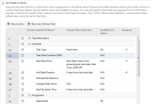 - Click New Section. A new section row is added to the table directly below the last visible field in the last section above the Hidden Fields row.