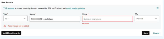 On this page, administrators with the required permission can validate and optionally DKIM authenticate any domains that will be allowed to send emails from Autotask. Here, you can view the domains Autotask has discovered in your Autotask instance, manually add new domains, and manage the list of email domains that can generate outgoing emails from Autotask.