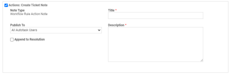 - For ticket workflow rules, you may also select the Append to Resolution check box to add the note to the ticket resolution