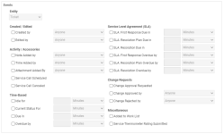NOTE SLA and Change Approval events will only trigger a workflow rule if those features are enabled. Refer to Introduction to service level management and Change management for more information.
