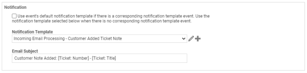 Email Subject | You also have the option of entering your own email subject line, which will override the one in the notification template you've selected. |
