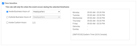 The Time-Sensitive section allows you to limit when the workflow rule will be triggered. This is great for creating different workflow rules for business hours and after hours, or assigning a ticket to a team in another time zone if you have a follow-the-sun support model.