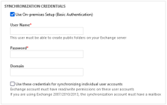 The check box will be hidden when Use On-premises Setup (Basic Authentication) is selected in the Synchronization Credentials section below. |