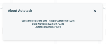 NOTE If multi-language support is enabled for your Autotask instance, it will be indicated in the Help > About Autotask pop-up.