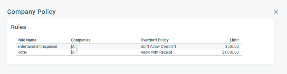- On the Expense page, the rule that applies to the selected expense is separated out on the Organization Policy pop-up window.