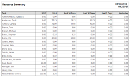 All resource hours and internal costs for last year, current year, and last 90/30/7/1 days. Select check box to include inactive resources. |