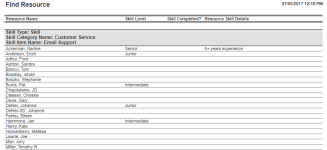This report shows all the skills acquired by the resource. |