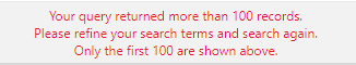 - The search results are limited to 100. If more than 100 notes exist, the number will display 1-100 of 100+ and a note will appear at the bottom of the notes list: