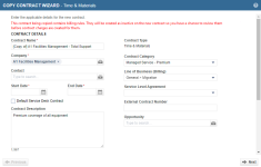 The Copy Contract Wizard allows you to create a copy of an existing contract and populate it with information from the original contract. You can copy a contract for the same organization or a different organization.