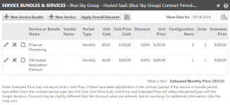 If the service bundle or service period type differs from the contract period type, the Unit Cost, Unit Price (List), and Extended Price will reflect the period type with the longer duration.