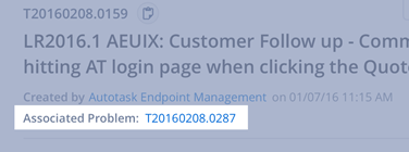 This line only exists on Incident tickets that are associated with a Problem ticket. Clicking the ticket link will open the Problem ticket. |