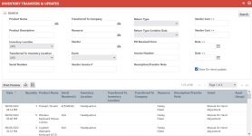The Inventory Transfers & Updates page is a read-only page that tracks the movement of, and updates to, stocked items in your Autotask instance. Tracking begins when the inventory product and stocked items are created, and follows the stocked item through its entire life cycle. You can follow how a serialized stocked item moves in and out of your inventory by searching for the serial number.