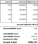 EXAMPLE Example 1: The billable amounts used to calculate the Total Billable Amount were rounded to two decimal places, that is, the same amounts as those displayed in the Billable Amount column. The Total Billable Amount equals 481.83, the exact amount of the sum of items in the Billable Amount column. There are no discrepancies.