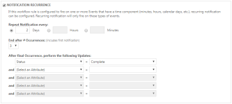 NOTE Notification recurrences will fire as long as the conditions of the workflow rule are met. If an action resets a time component, but the conditions are still met, the Notification Recurrence count will not be reset.