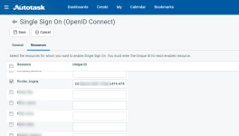 IMPORTANT Since Azure AD and Entra ID do not support exposing custom attributes via OpenID Connect (i.e. setting the autotaskusername value for a user within the IdP), in Autotask, Azure AD and Entra ID clients must use the Enabled for selected resources using Identity Provider's Name Identifier option, where the user's unique ID from the IdP is set on the Autotask SSO page.